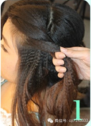 第三步:顶发区头发夹玉米须,打毛隆起弧状固定